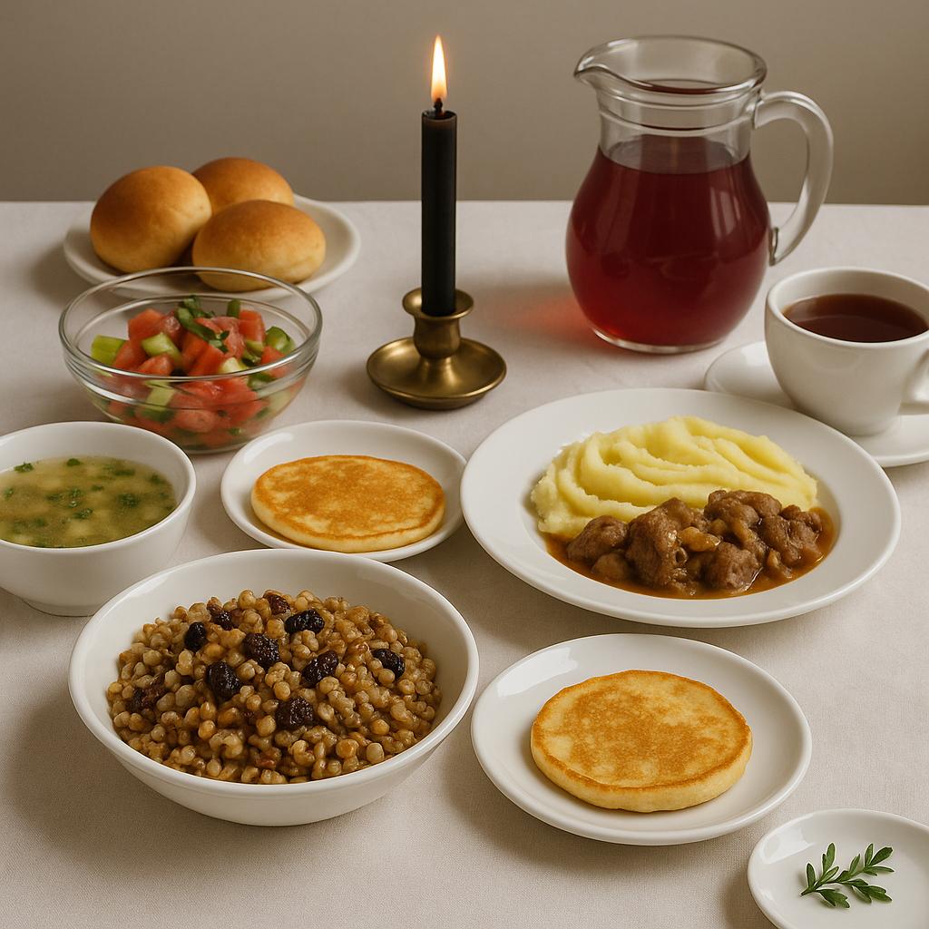 Поминальный обед — это не место для торжественных тостов. Обычно перед началом читают короткую молитву или слово памяти. Еда подаётся неспешно, чтобы каждый мог поделиться воспоминаниями, но без суеты.